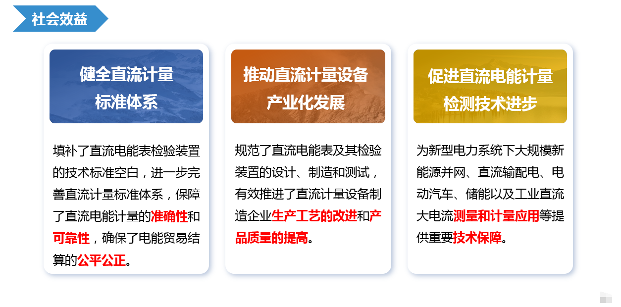 本團體標準廣泛應用于計量院、電網公司、計量檢測機構以及相關制造企業,提升了直流電能計量器具及其檢驗裝置的設計、制造和規模化應用。