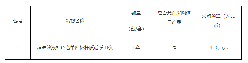 煙臺新藥創制山東省實驗室超高效液相色譜單四極桿質譜聯用儀采購項目 招標項目的潛在投標人應在www.oitccas.com獲取招標文件,并于2023年04月14日 13點30分(北京時間)前遞交投標文件。