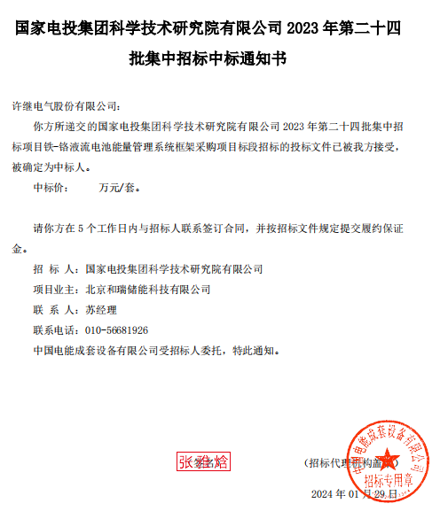 近日,許繼電氣股份有限公司成功中標(biāo)國(guó)家電投集團(tuán)科學(xué)技術(shù)研究院有限公司“鐵-鉻液流電池能量管理系統(tǒng)框架采購(gòu)”項(xiàng)目,是公司在儲(chǔ)能能量管理系統(tǒng)領(lǐng)域取得的又一個(gè)突破。