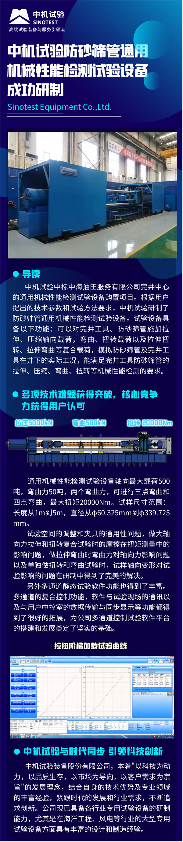 中機(jī)試驗(yàn)防砂篩管通用機(jī)械性能檢測試驗(yàn)設(shè)備成功研制