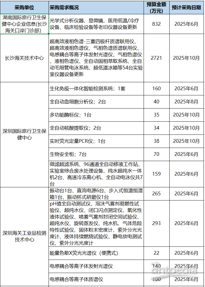 海關系統儀器設備及試劑耗材采購意向匯總