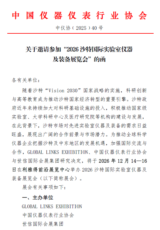 關于邀請參加“2026 沙特國際實驗室儀器及裝備展