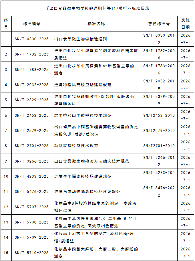 12月11日,海關(guān)總署發(fā)布《出口食品微生物學(xué)檢驗(yàn)通則》等117項(xiàng)行業(yè)標(biāo)準(zhǔn)。這些新發(fā)布的行業(yè)標(biāo)準(zhǔn)旨在進(jìn)一步規(guī)范出口食品的檢驗(yàn)流程,確保出口食品的質(zhì)量與安全,提升我國食品在國際市場上的競爭力。