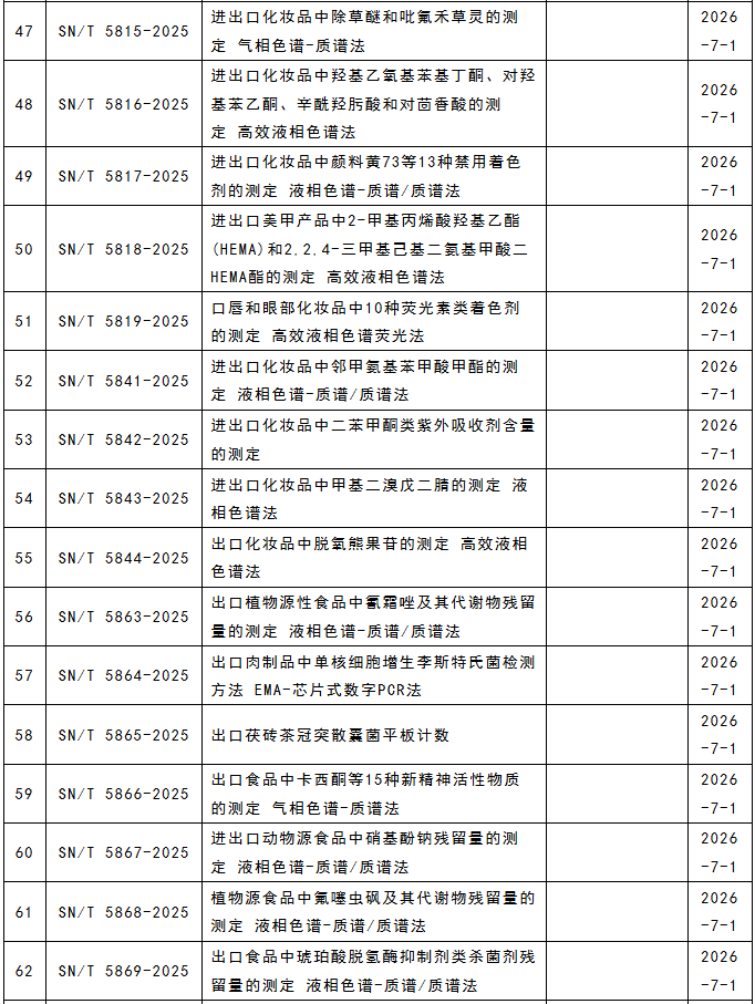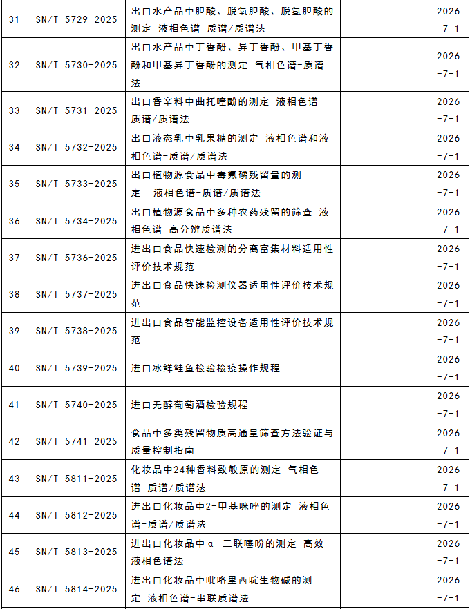 這117項(xiàng)行業(yè)標(biāo)準(zhǔn)涵蓋食品、化妝品、藥材等領(lǐng)域,涉及液相色譜串聯(lián)質(zhì)譜法、液相色譜-質(zhì)譜/質(zhì)譜法、高效液相色譜法、電感耦合等離子體質(zhì)譜法、近紅外光譜法、實(shí)時熒光PCR方法等檢測方法。