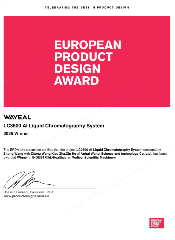 近日,安徽皖儀科技股份有限公司(以下簡稱“皖儀科技”)LC3500液相色譜系統(tǒng)憑借卓越的綜合實力,榮膺2025歐洲產(chǎn)品設(shè)計獎(EUROPEAN PRODUCT DESIGN AWARD),成為皖儀科技高端分析儀器在本年度國際獎項征程中的里程碑。該獎項不僅是對產(chǎn)品性能與設(shè)計的充分肯定,更代表了歐洲評委對皖儀科技品牌的高度認可,為中國分析儀器拓展全球高端市場注入了強勁動力。