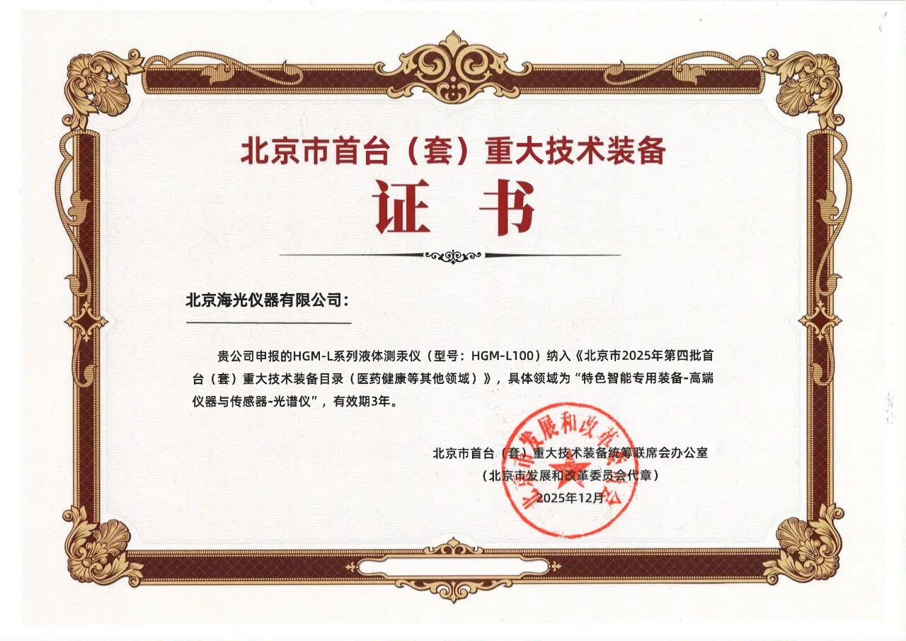 近日,北京市發(fā)展和改革委員會(huì)正式發(fā)布2025年北京市第四批首臺(tái)(套)重大技術(shù)裝備目錄,海光公司自主研發(fā)的“HGM-L液體測(cè)汞儀”成功入選。這標(biāo)志著該設(shè)備在技術(shù)創(chuàng)新、性能指標(biāo)及市場(chǎng)應(yīng)用前景方面獲得了官方權(quán)威認(rèn)可。