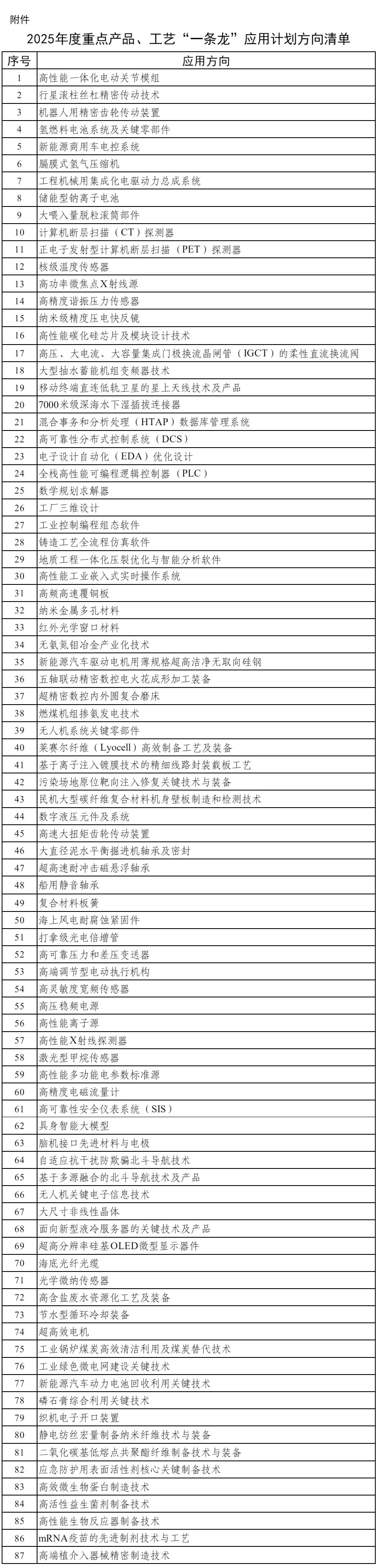 附件:2025年度重點產品、工藝“一條龍”應用計劃方向清單