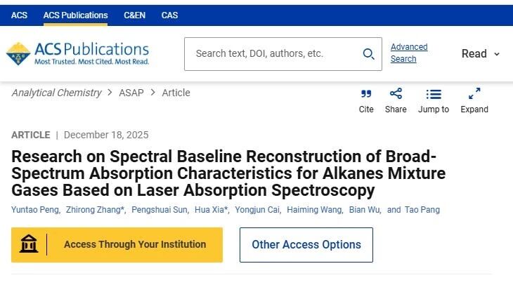 近日,中國科學院合肥物質科學研究院安徽光學精密機械研究所張志榮研究員團隊在寬譜吸收氣體基線重建技術研究方面取得重要進展。相關研究成果以《基于激光吸收光譜的烷烴混合氣體寬譜吸收特性基線重建研究》為題,發(fā)表在國際學術期刊《分析化學》(Analytical Chemistry)上。