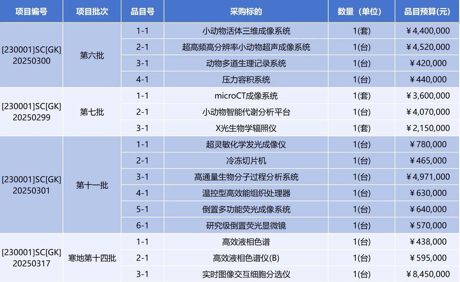 近日,哈爾濱醫科大學寒地心血管病全國重點實驗室正式啟動大規模科研儀器設備更新項目,本月已密集發布多個批次的招標公告。
