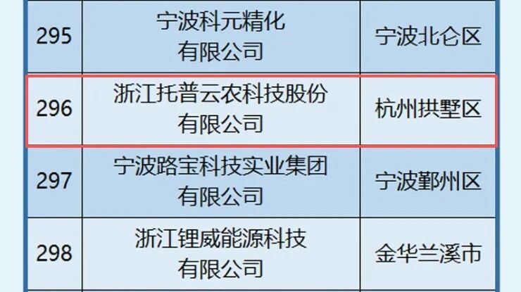 近日,2025年浙江省高新技術(shù)企業(yè)創(chuàng)新能力500強(qiáng)榜單正式揭曉,浙江托普云農(nóng)科技股份有限公司(股票簡稱:托普云農(nóng),股票代碼:301556)憑借深厚的科技創(chuàng)新積淀、突出的技術(shù)突破實力與卓越的成果轉(zhuǎn)化能力,成功入選榜單。